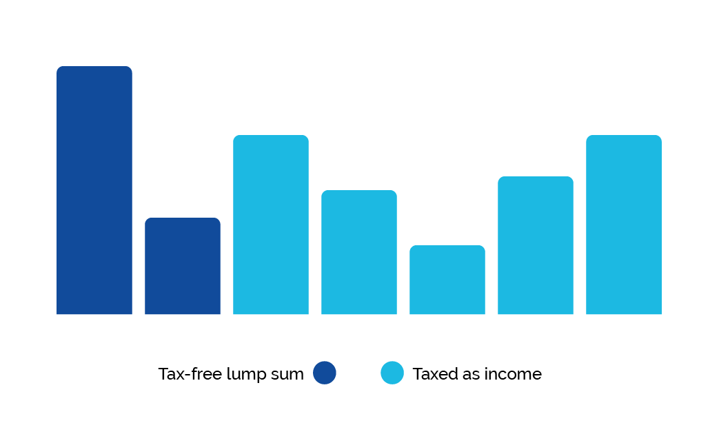 There are 2 ways of taking your pension pot a bit at a time. With both options you’ll usually receive up to 25% of your pension as a tax-free lump sum with the remaining amount either being paid to you at the same time as your taxed sum or being invested in a flexi-access drawdown account. You’ll need to decide which option is best for you.
